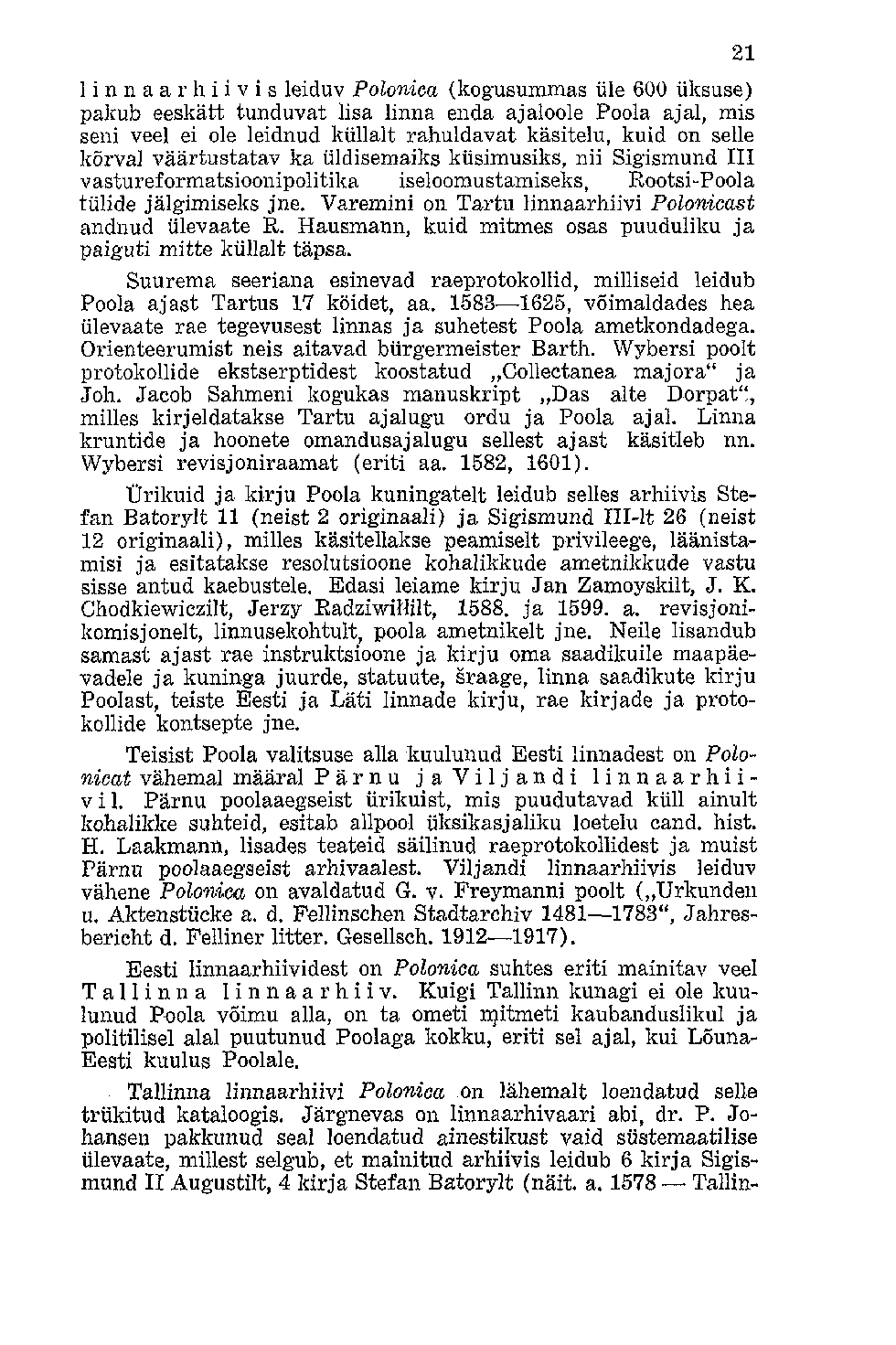 Ülevaade Eesti ja Poola ajaloolistest suhetest ja Polonicast Eesti arhiivides