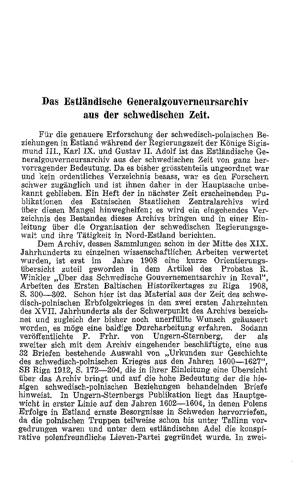 Die Estländische Generalgouverneursarchiv aus der schwedichen Zeit