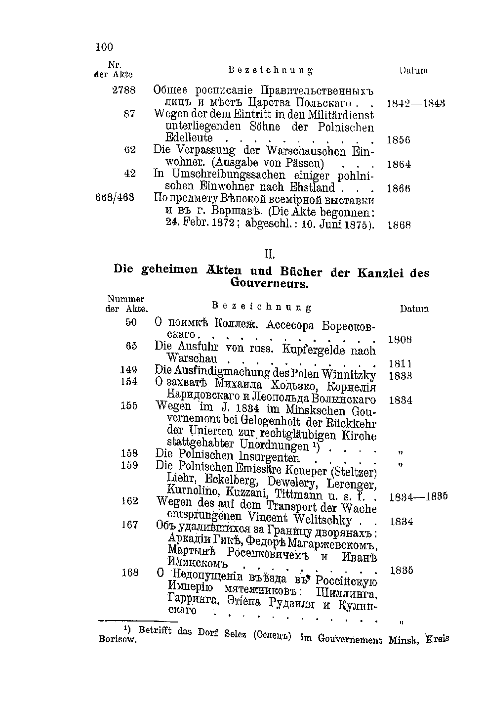 Verzeichnis der auf Polen bezüglichen Akten und Bücher des Gouverneurs und der Gouvernementsregierung von Estland