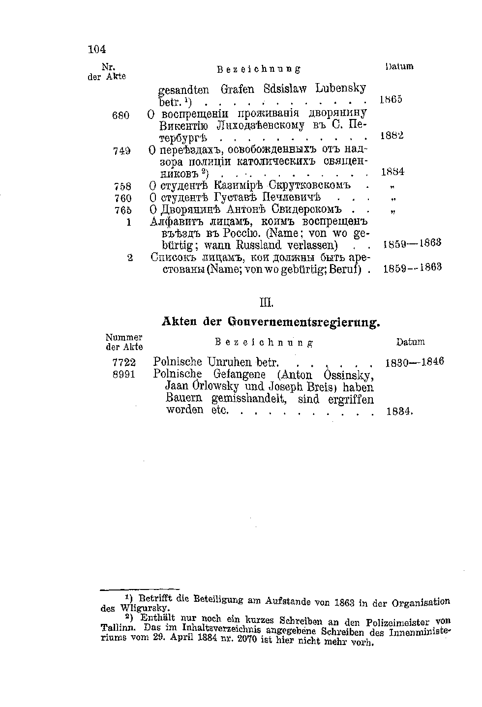 Verzeichnis der auf Polen bezüglichen Akten und Bücher des Gouverneurs und der Gouvernementsregierung von Estland