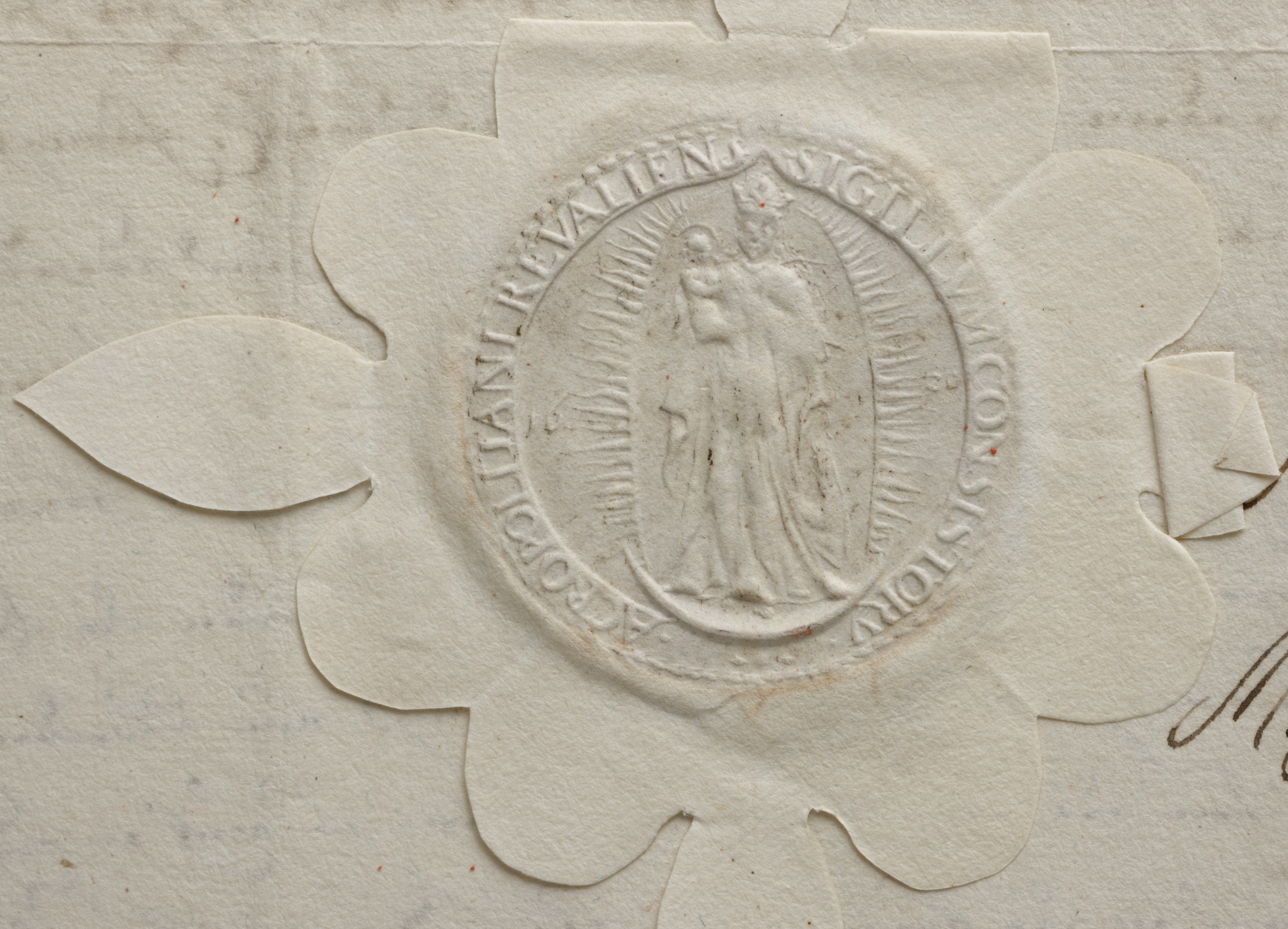 | Kuramaa piiskopkonna toomkapiitel, 1290-1549 | Neitsi Maarja kroonimine, Kristus, tuvi, liilia | 1290 | |