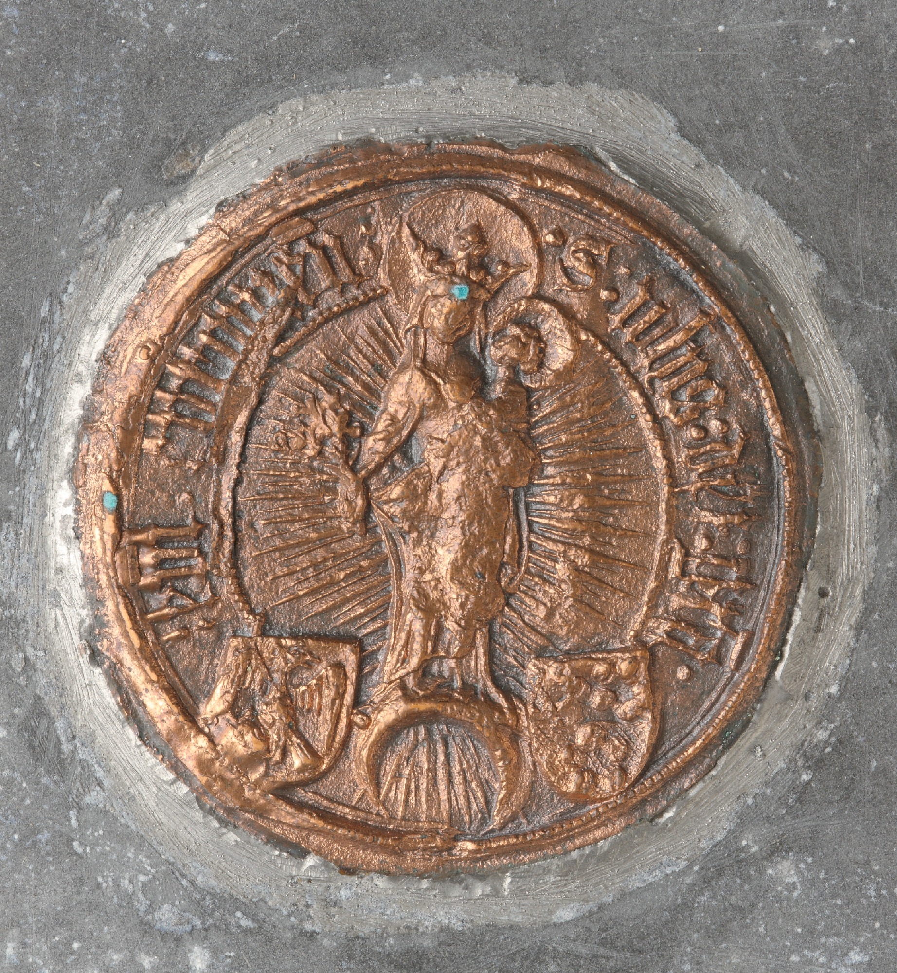 | Kuramaa piiskop Johannes Tirgart; väike pitser (Seckretsiegel) | Neitsi Maarja Jeesuslapsega | 1426 | |
