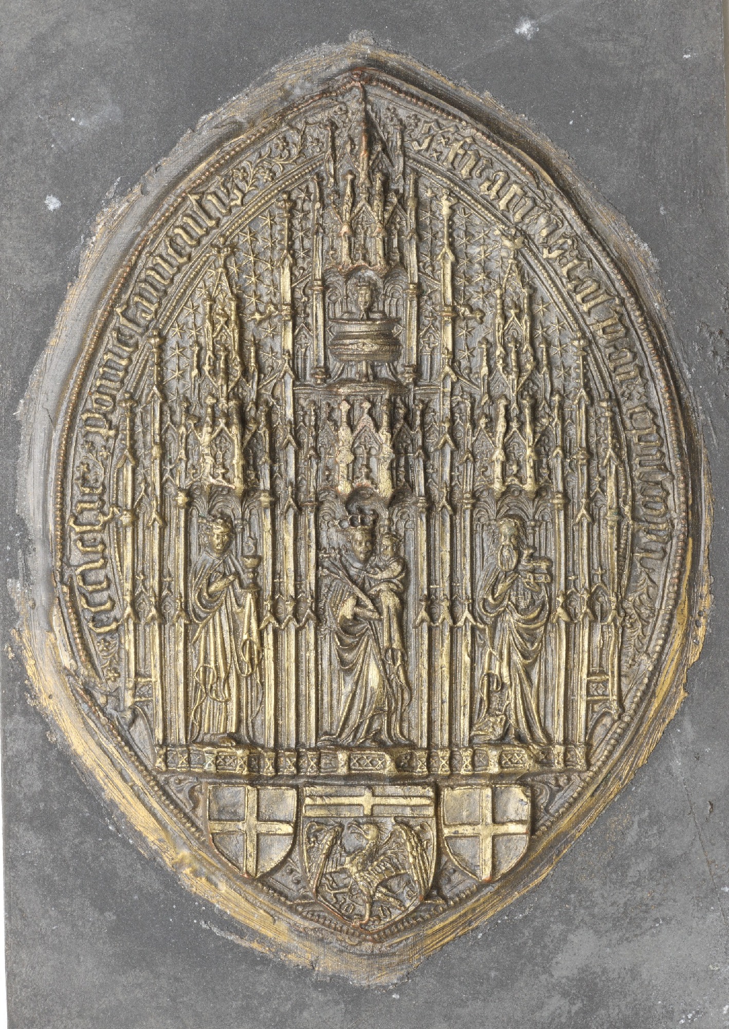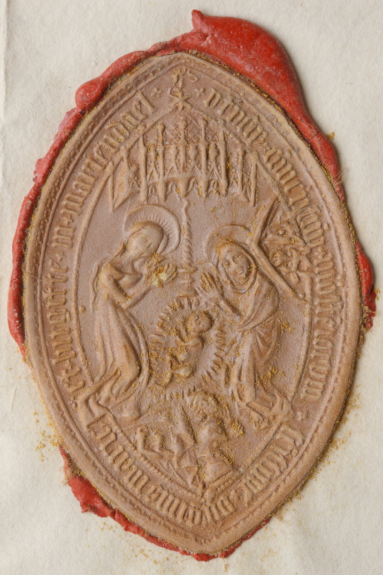 Pirita kloostri (Brigittenkloster) vendade konvent 1537-1563; (kasutajana abtiss Margarethe von Dönhoff)Neitsi Maarja, Jeesuslaps, Püha Brigita, munk, eesli ja härja pea1563