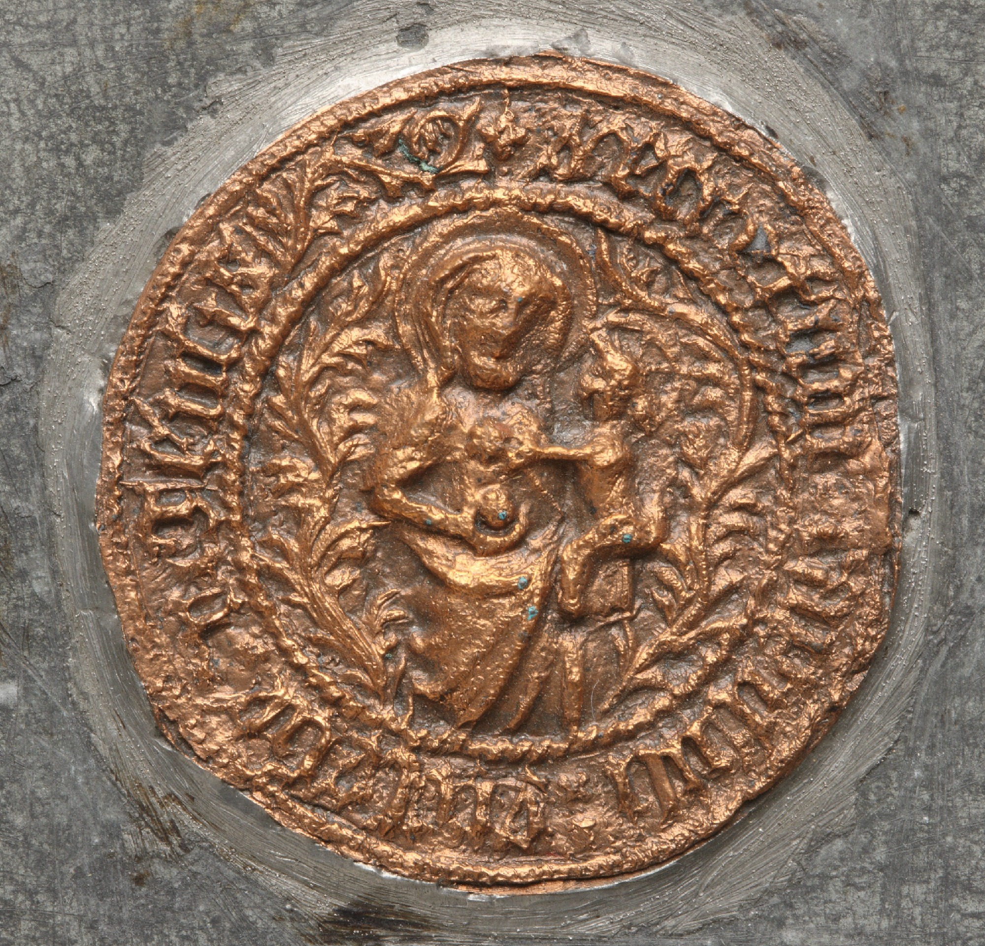 | Riia toomkapiitel, 1534-1451, väike pitser (Seckretsiegel) | Neitsi Maarja kroonimine, evangelist Johannes | 1435 | |
