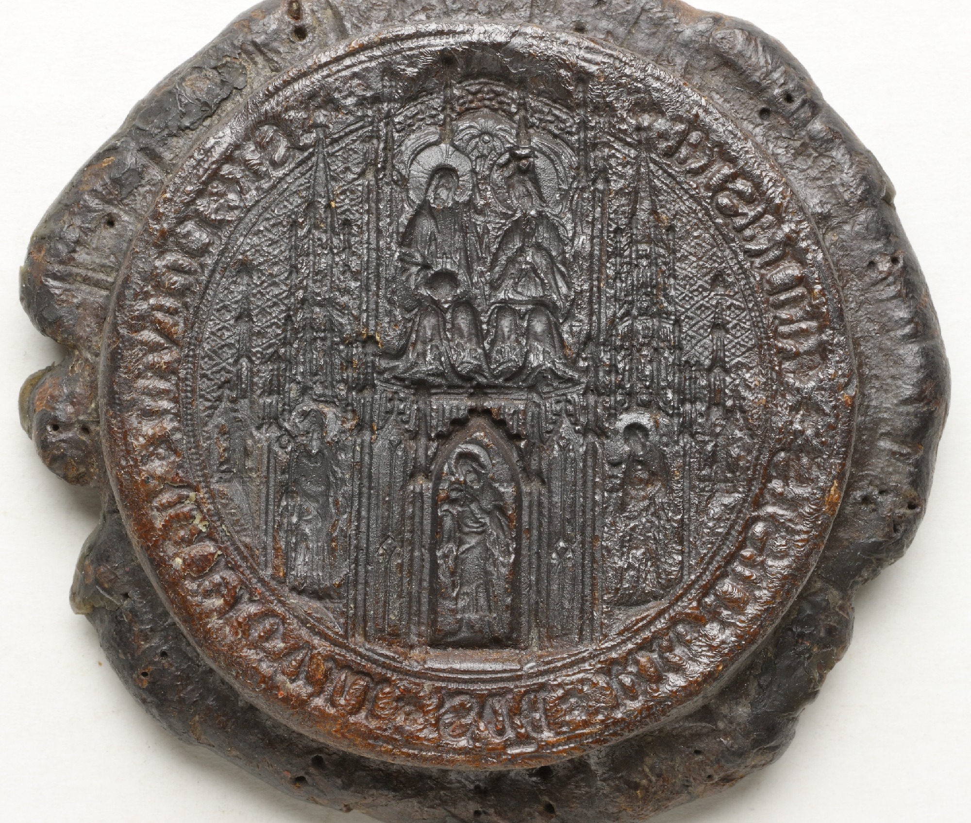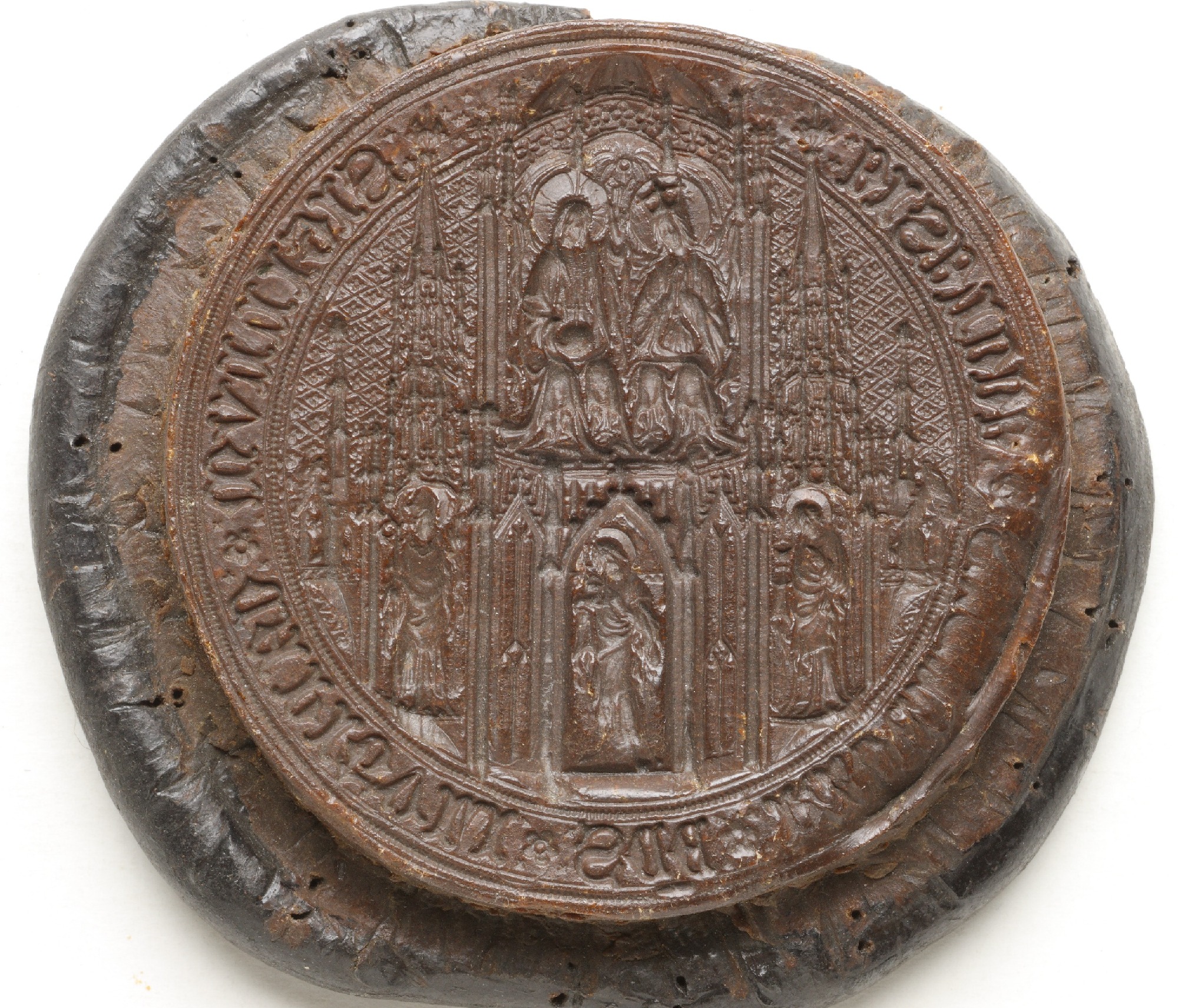 | Riia toomkapiitel, 1434-1451, väike pitser (Secretsiegel) | Neitsi Maarja kroonimine, evangelist Johannes | 1435 | |