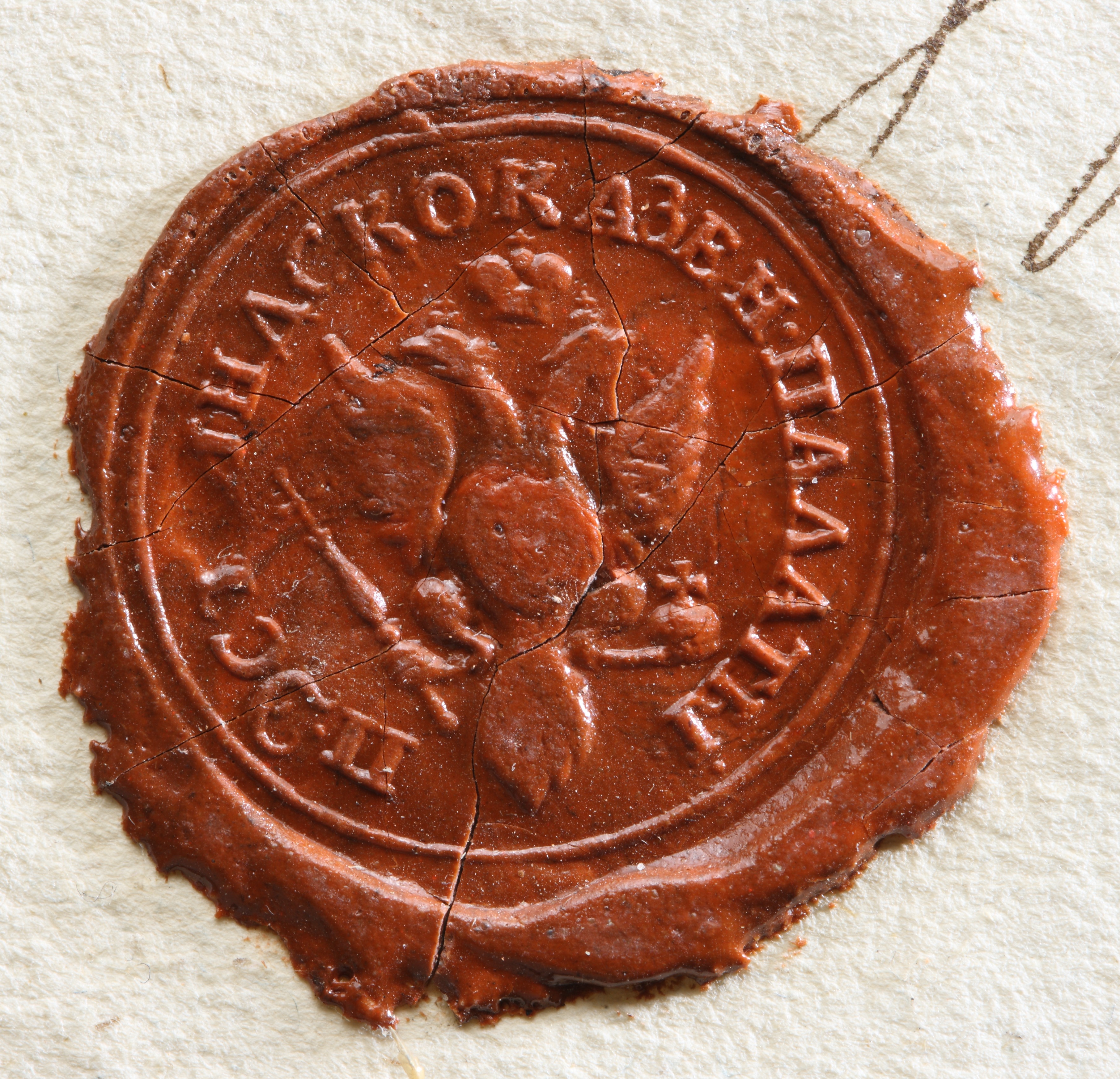 | Esikülje kirjeldus | Pitseri väljal Vene keisririigi vapp (kahepäine kotkas). |