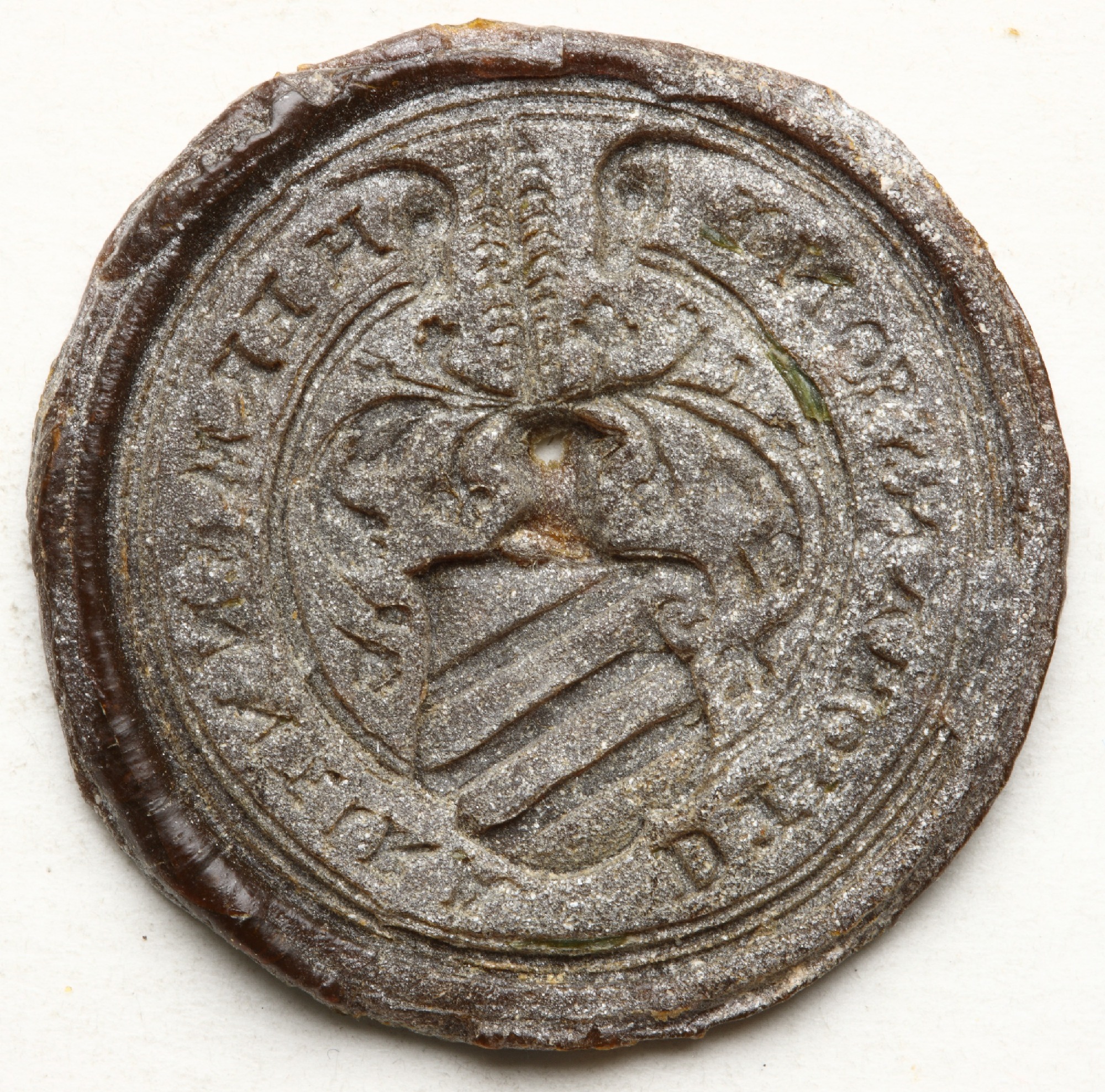 | Esikülje kirjeldus | Pitseri väljal vapikilbil kolm kaldpalki. Vapikilbi peal kiivril oks. |