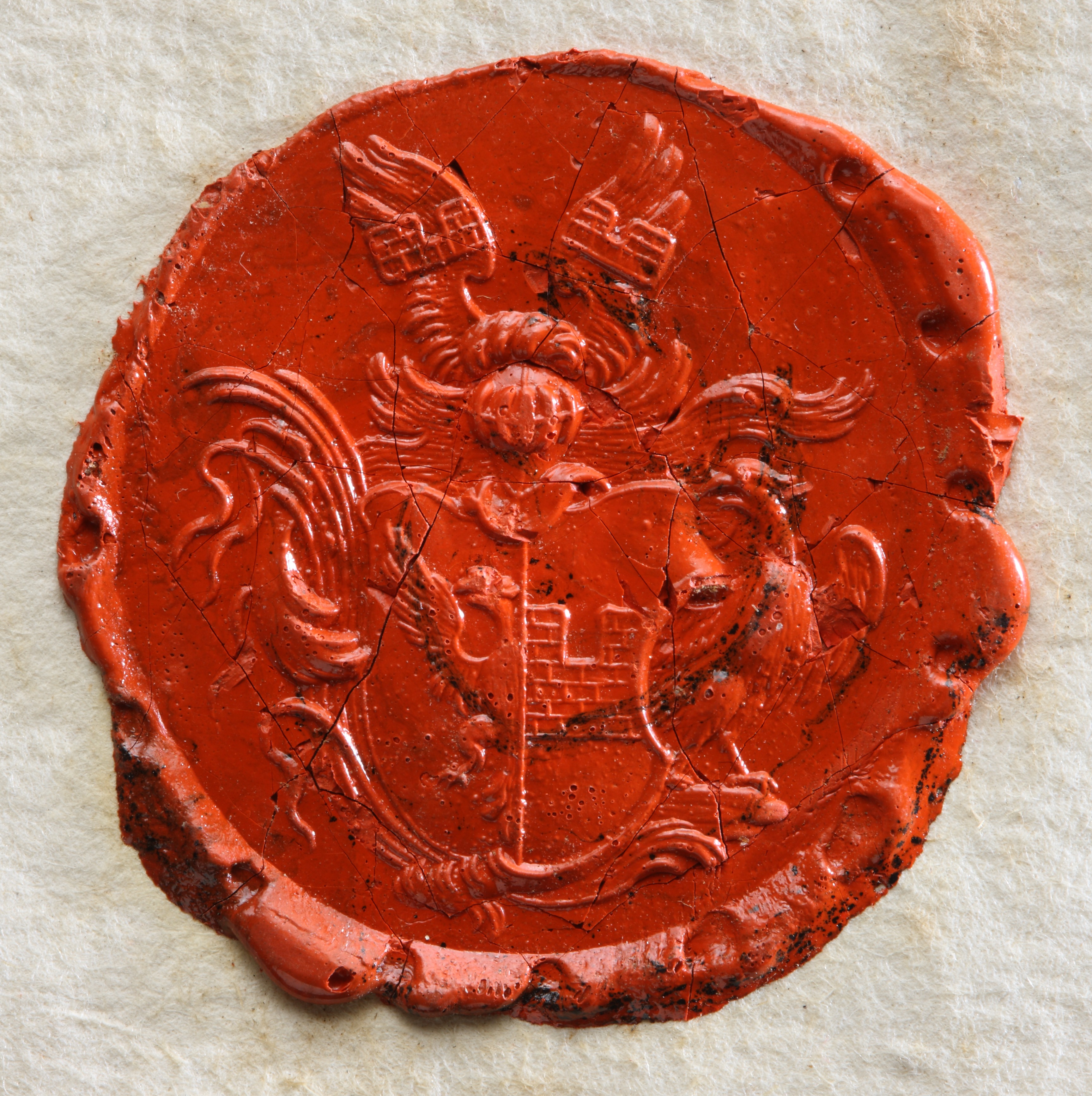 Esikülje kirjeldusVapikilbi väli lõhustatud: paremal pool pool kahpäisest kotkast; vasakul pool hambuline müüri osa. vapikilbi peal kotkatiivad,