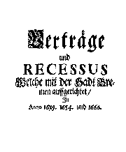 | Titel | Verträge und RECESSUS Welche mit der Sadt Bremen auffgerichtet, In Anno 1639, 1654 und 1666 |