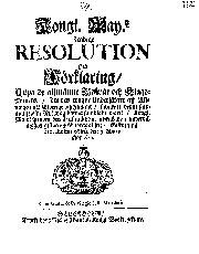 | Titel | Kongl. May.tz Nådige RESOLUTION och Förklaring, Uppå de allmänne Beswär och Klage-Puncter, som des trogne Undersåtare aff Allmogen uti Swerige och Finland, hwilke til denne sammanskrefne Rijksdag hafwa samblade warit, Kongl. May:t igenom deras fullmächtige utstickade i underdänigheet gifwa och föredraga låtit |