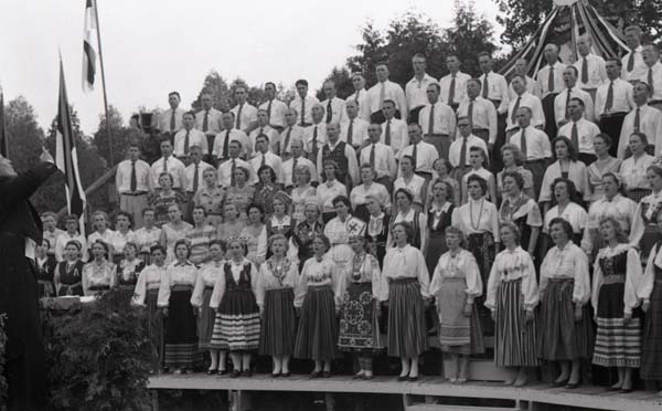 | Content Description | Laupäeval 30. juunil ja pühapäeval 1. juulil 1956. a. toimus algusega kell 18:00 Kitcehneri lähedal Pilkengtonis Seedrioru suvekodu maa-alal, 65 miili Torontost Eesti Laulupäev Kanadas. Laupäeval oli kohal 3000 osavõtjat. Osa võtsid eesti segakoorid Buffalost, Torontost, Montrealist, Hamiltonist, Kitchenerist, Londonist ja St. Catharines’ist. Laulupäeva üldjuht oli Roman Toi. Laulupäeva peokõne pidas Ludvig Juht Bostonist. Õhtune Valguspidu hakkas kell 22:00, mille korraldasid Eesti Spordiselts Kalev võimlejad, kes ise koos rahvatantsijatega Torontost esinesid. Laulupäev oli Kanada eestlaskonna silmapaistvaks 1956. aasta rahvuskultuuriliseks sündmuseks, aga ka heaks toetuseks Eesti laste suvekodule, mille heaks läks Laulupäeva tulu. Pühapäeval, 1. juulil kell 11:00 toimus kontsert-jumalateenistus, kus esines kontrabassil Ludvig Juht, keda klaveril saatis Roman Toi. Töötas einelaud soojade eestipäraste toitude ja karastavate jookidega. Pääsmed maksid $1.50 ja autoarkimine oli tasuta. Laulukoori laval juhatab helilooja, dirigent, organist ja muusikapedagoog Roman Toi (1916-2018). Seeria teised kaadrid: FK_1-103-112, FK_1-1185-1199, FK_1-6950 ja FK_1-6953. |
