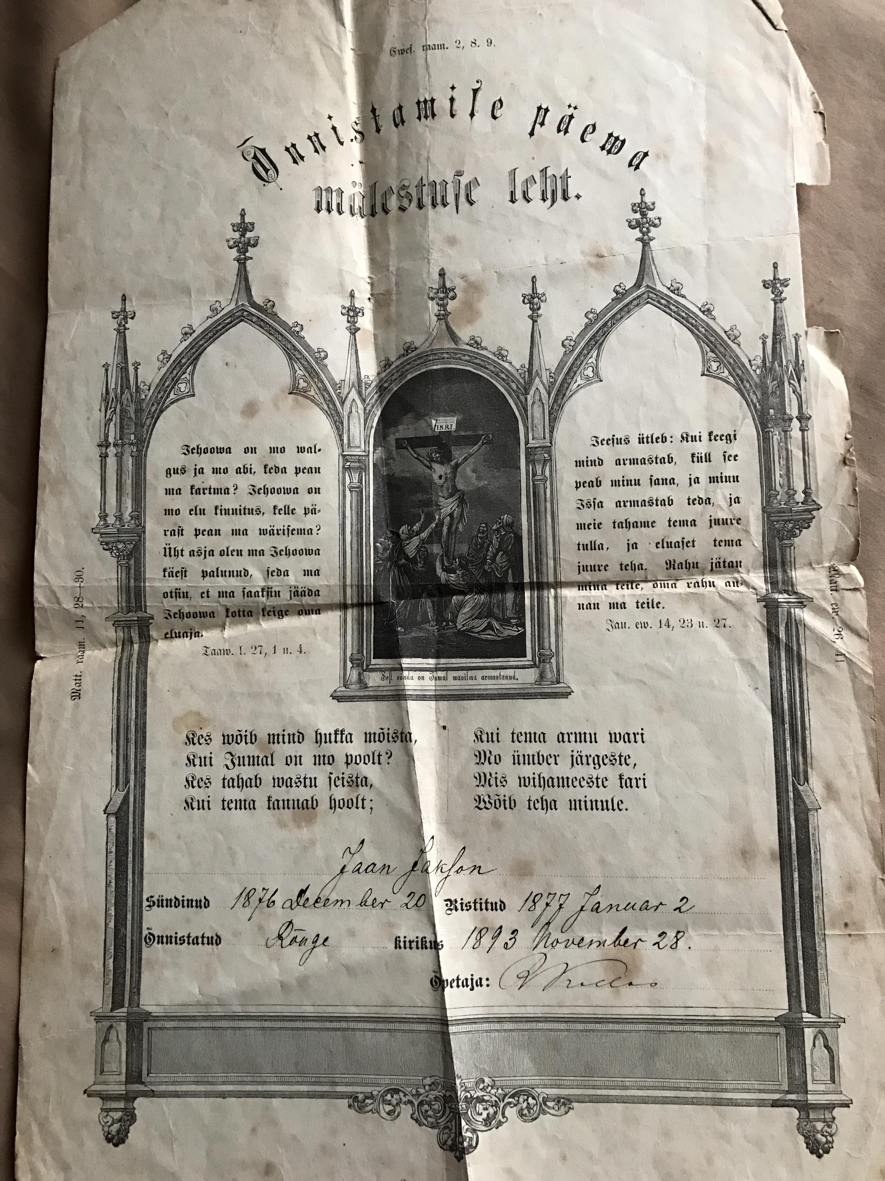 Jaan Jaksoni ristimistunnistus |