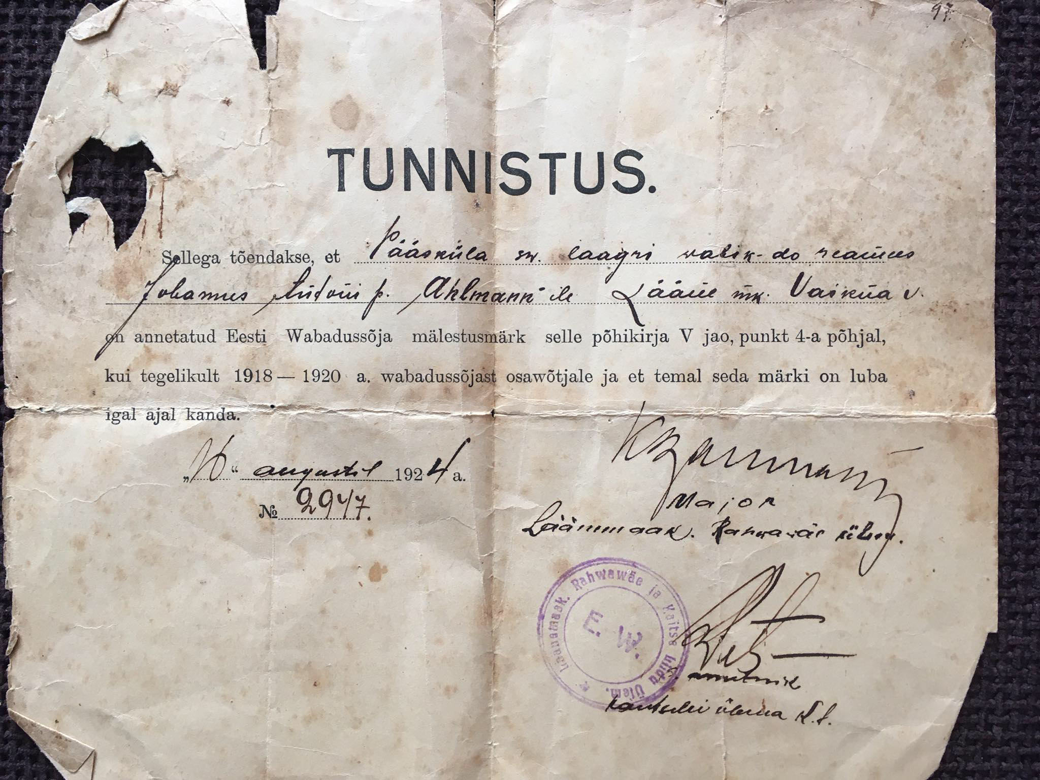 | Osales Vabadussõjas | Jah |