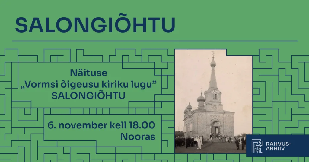 Rahvusarhiivis Tartus (Nooruse 3) toimub 6. novembril kell 18 salongiõhtu. Hubasel koosolemisel tutvustatakse Vormsi õigeusu kiriku lugu tutvustavat näitust.